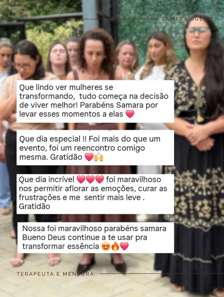 Samara Bueno é mentora de mulheres e terapeuta cristã, dedicada a ajudar mulheres a encontrarem cura emocional, propósito e direção espiritual.